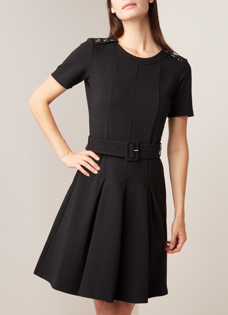 A lijn zwarte jurk. Het model van de a lijn jurk valt op de knie of is net iets langer. Een echte musthave voor iedere vrouw. Enkellang van zachte stoffen in stemmig zwart maakt mysterieus kort en krachtig met diepe plooien maakt modern. Hierdoor is de a lijn jurk naast casual ook geschikt voor een chique diner of zakelijke afspraak.