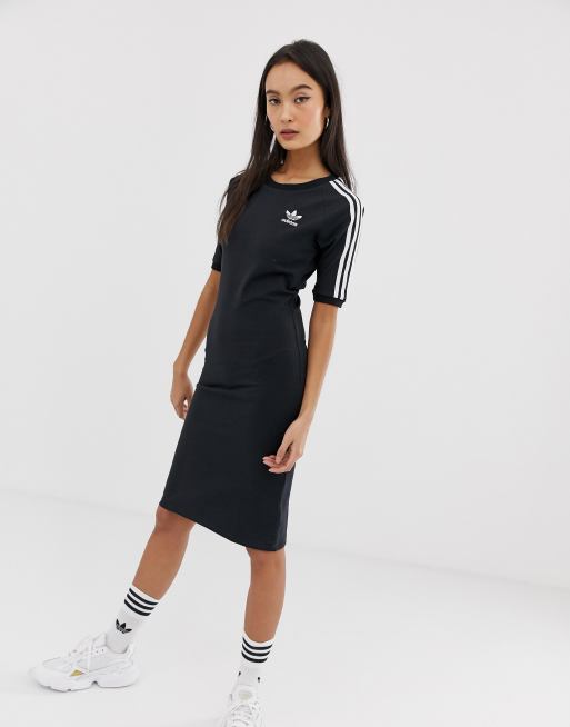 Adidas Originals Three Stripe Dress In Black Asos