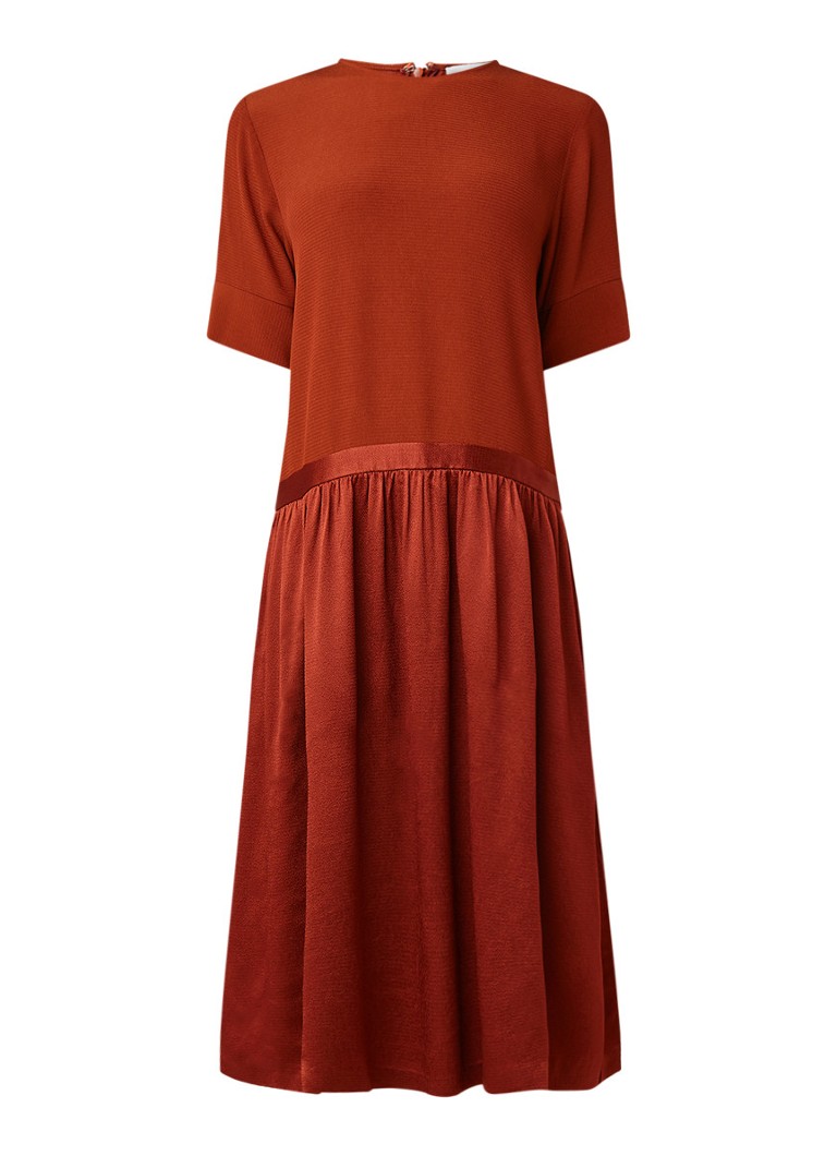 Anecdote Evelyn Midi Jurk Met Contrast Oranjebruin De Bijenkorf