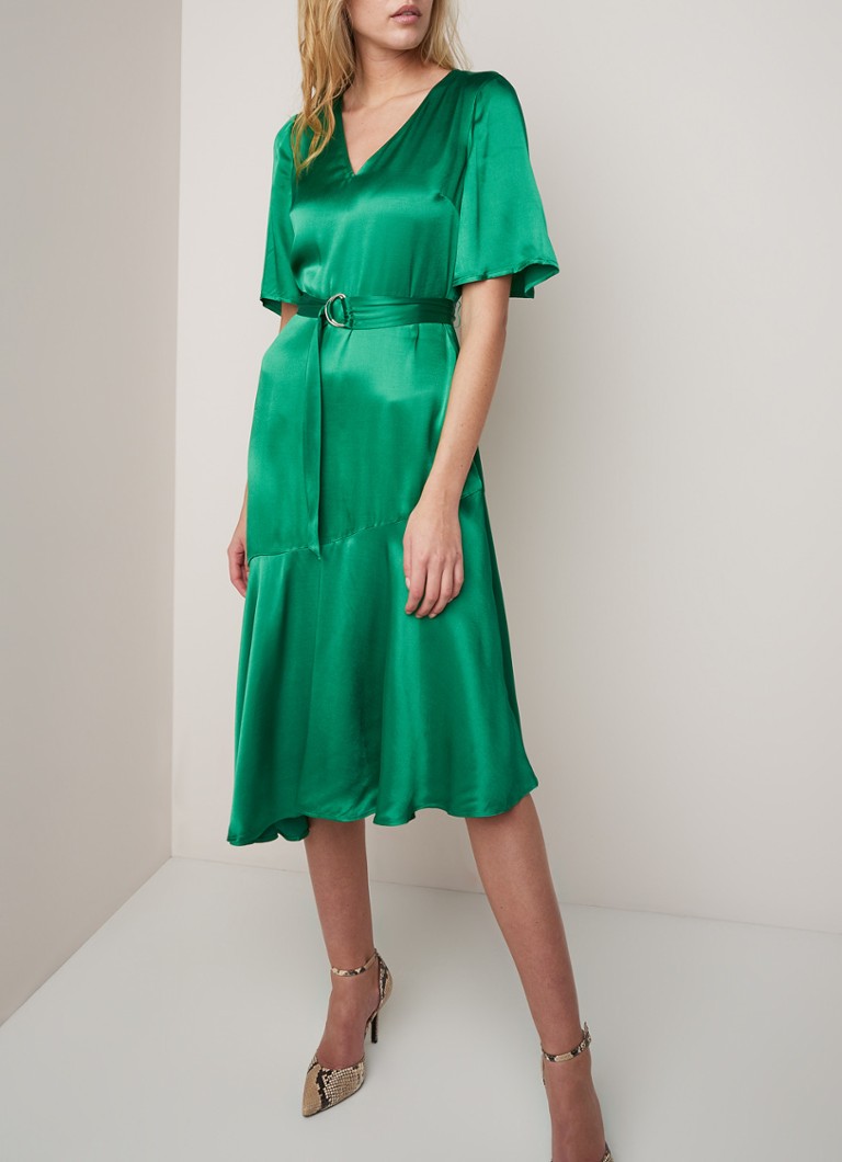 Phase Eight Vivola Midi Jurk Van Satijn Met Ceintuur Groen De