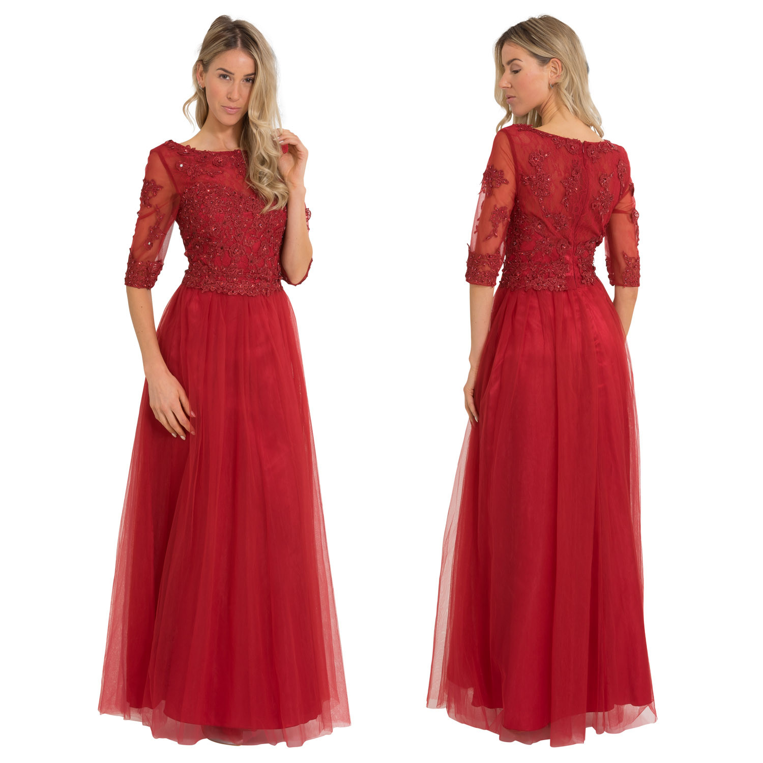 Galajurk Bordeaux Rood Lange Mouwen Tule 1539 Honneloeloe
