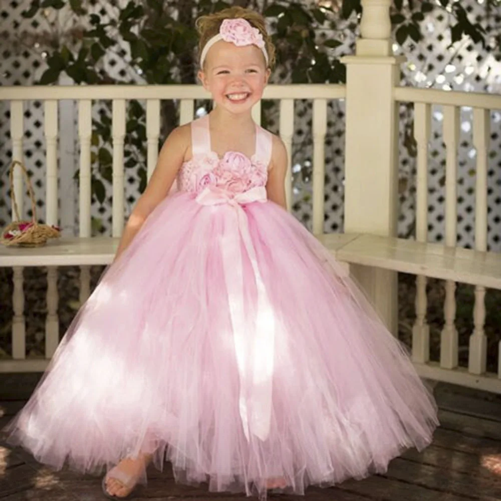 Blush Roze Bloem Meisje Jurk Met Bloem Hoofdband Prinses Meisjes