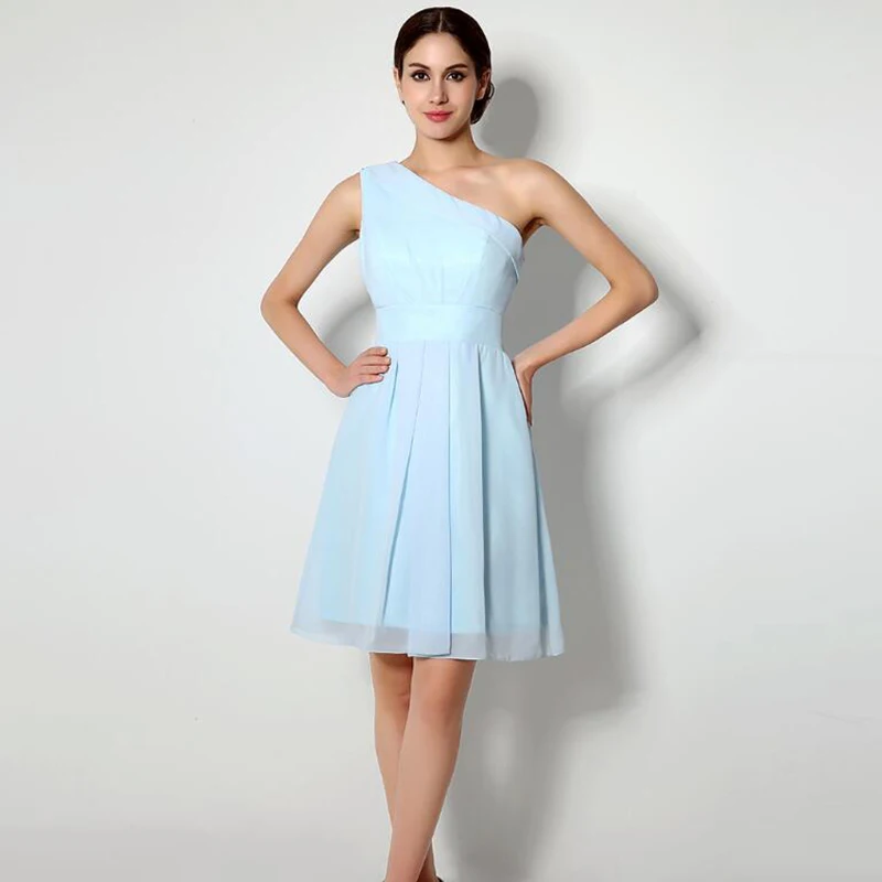 Shamai Een Schouder Goedkope Korte Chiffon Bruidsmeisje Toga