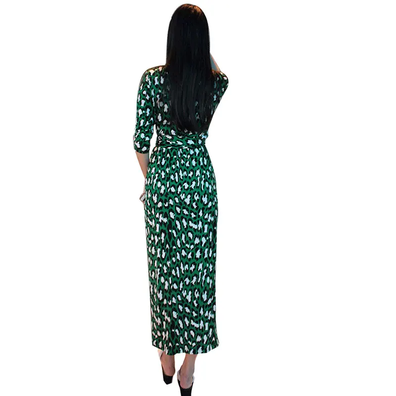 2018 Zomer Vakantie Strand Maxi Jurk Vrouwen Lepoard Print Groene
