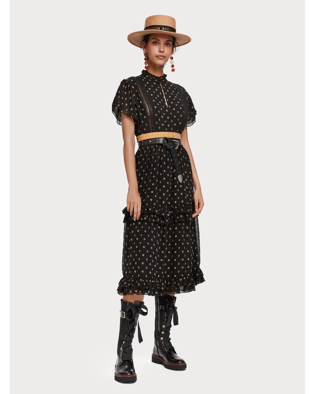 Scotch Soda Chiffon Jurk Met Print In Het Zwart Lyst