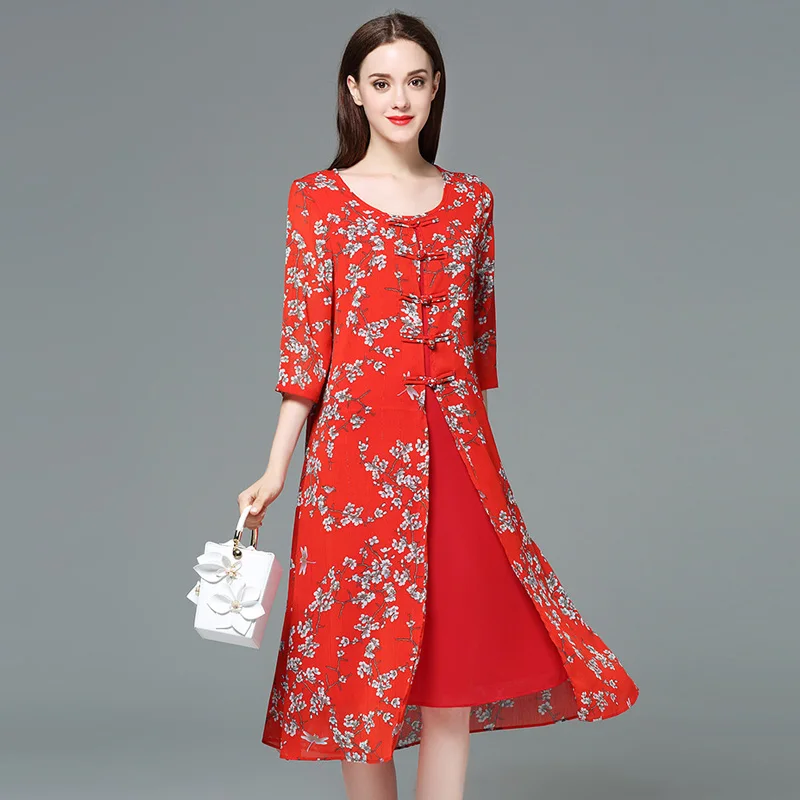 Vrouwen Zomer Nieuwe Chiffon Print Rood Grote Maat Jurk Vestidos