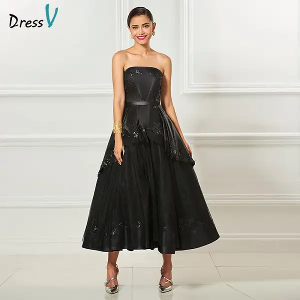 Dressv Zwarte Strapless Cocktailjurk Elegante Applicaties Mouwen