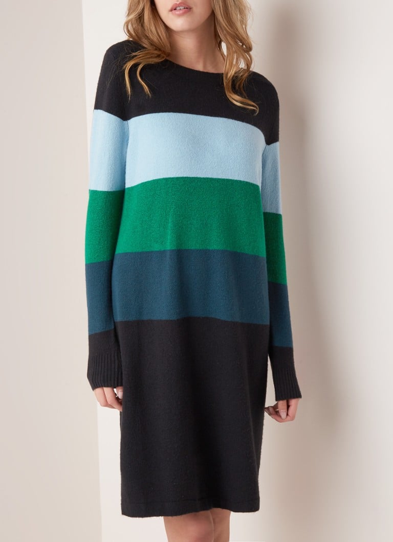 Sandwich Midi Jurk In Wolblend Met Colour Blocking Zwart De