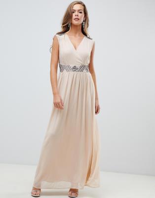 Ax Paris Cremekleurige Lange Jurk Met Versiering Jurken Sale