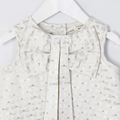 Mini Cremekleurige Jurk Met Strik En Relief Voor Meisjes River