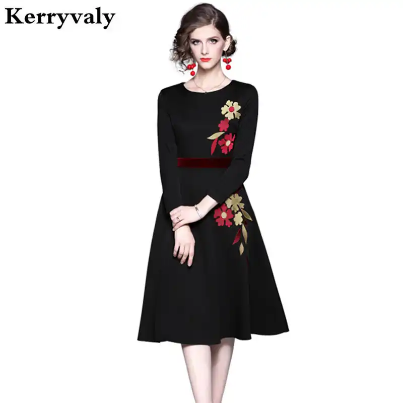 Autumn Long Sleeve Velvet Embroidered Dress Women Clothes 2020