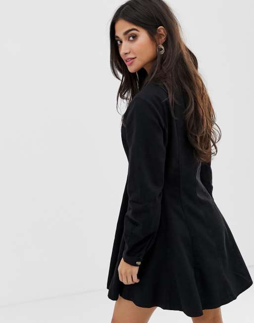 Asos Design Petite Denim Jurk Met Lange Mouwen En Knopen In