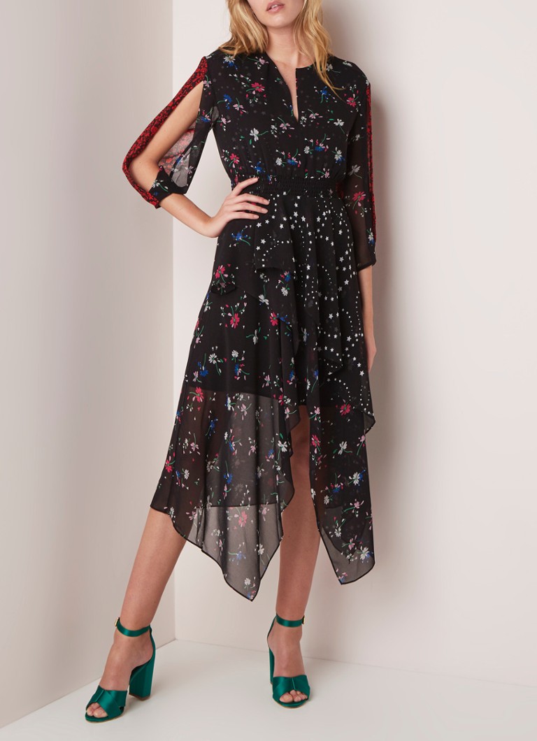 Maje Remix Maxi Jurk Met Bloemendessin En Volant Zwart De