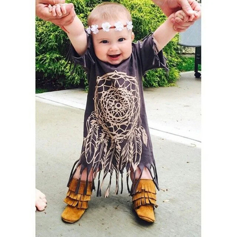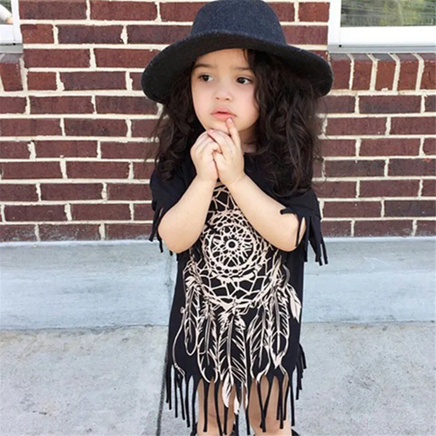 2016 Lente Zomer Meisjes Dreamcatcher Patroon Kwastje Jurk Kids