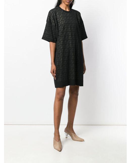 Fendi Synthetic Inlaid Ff Motif T Shirt Dress In Black Lyst