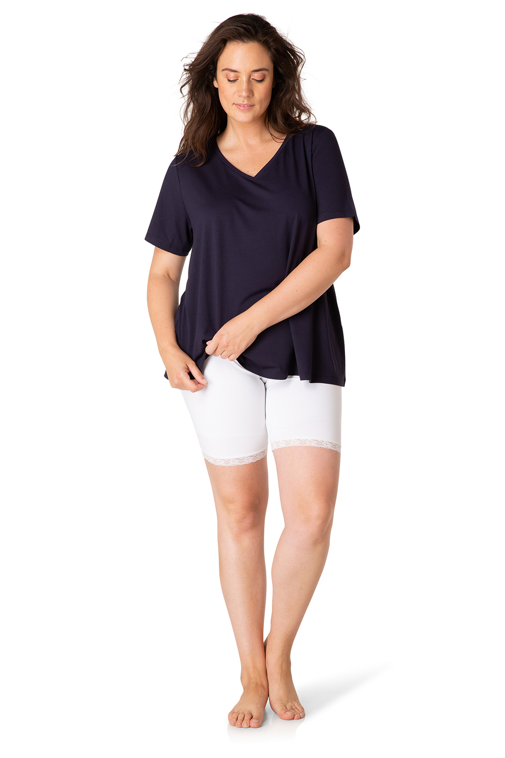 In zwart nude donkerblauw wit en legergroen. Dit wielrenbroekje van stretchstof zit ook bij beweging heerlijk comfortabel. Broekjes met pijpjes tegen schurende benen voor onder je jurk of rok. Wat zijn er veel leuke jurken en rokken in wondervolle maten te krijgen.
