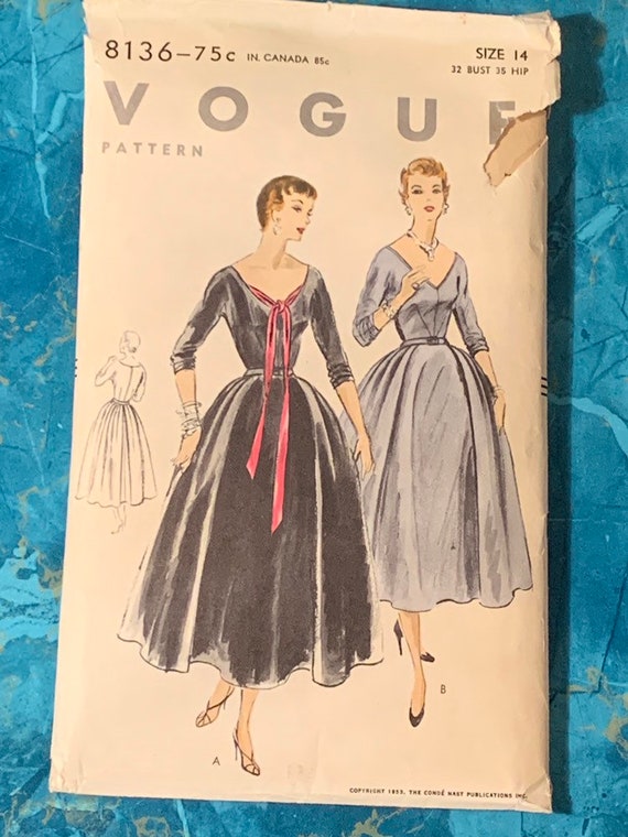 Vogue 8136 Patroon Pasvorm En Flair Jurk Sz 14 Echte Vintage Etsy