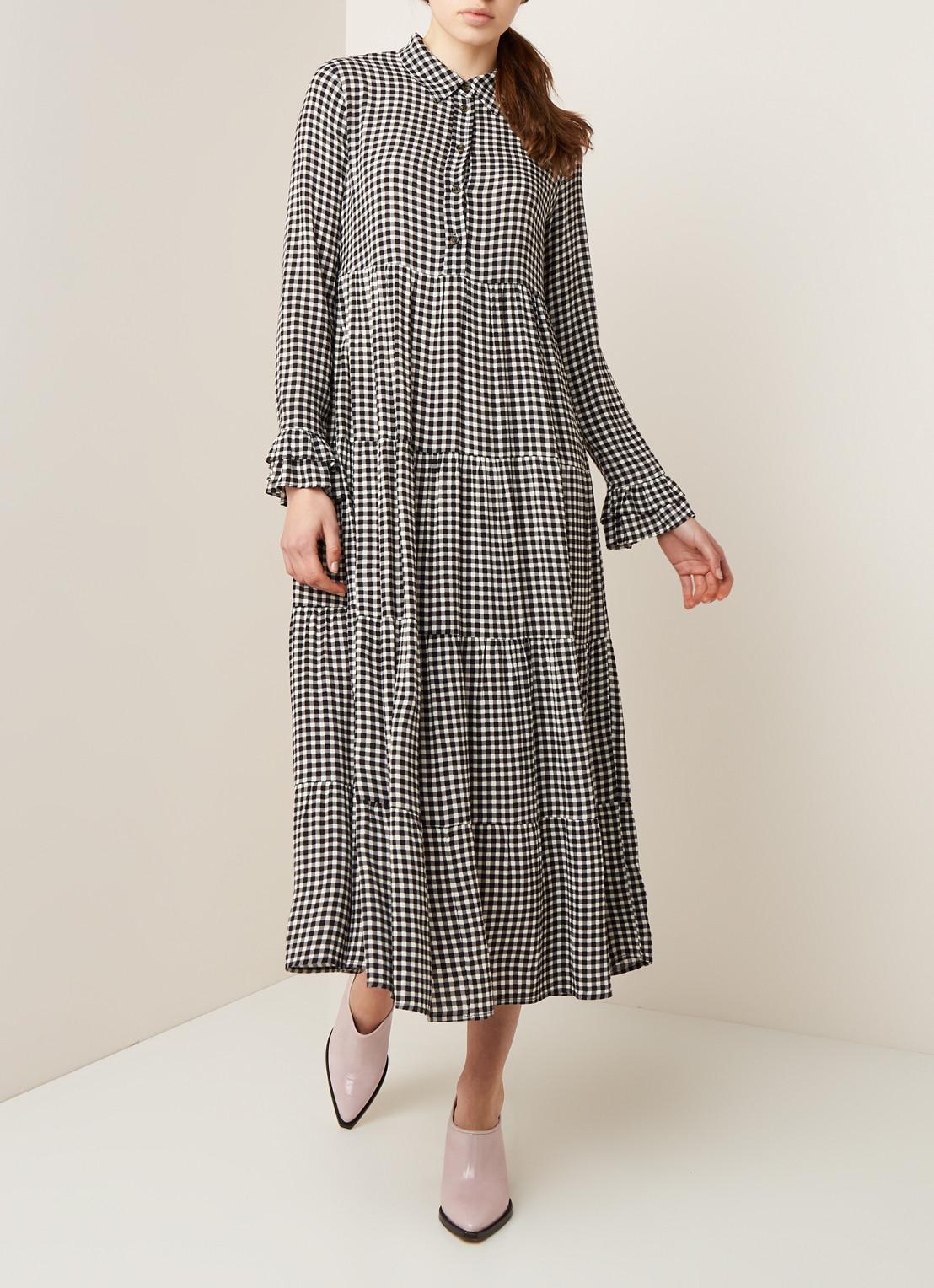 Ganni Synthetisch Maxi Jurk Van Crepe Met Gingham Dessin In Het