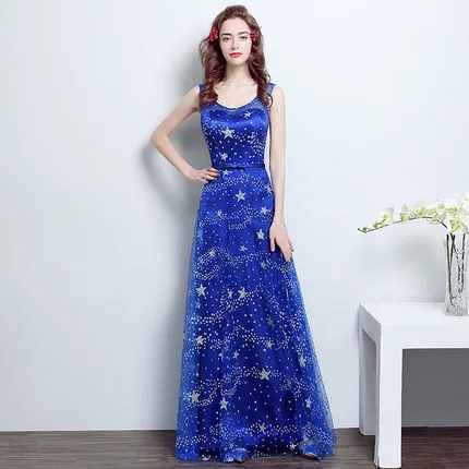 Gratis Schip Blauw Glitter Sterren Galaxy Lange Jurk Thema Studio