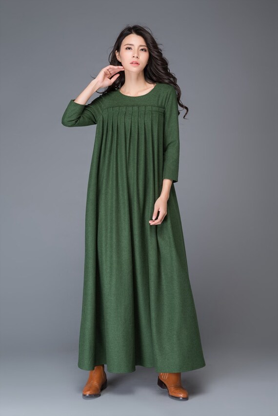 Groene Jurk Wollen Jurk Winter Jurk Maxi Jurk Womens Jurk Etsy