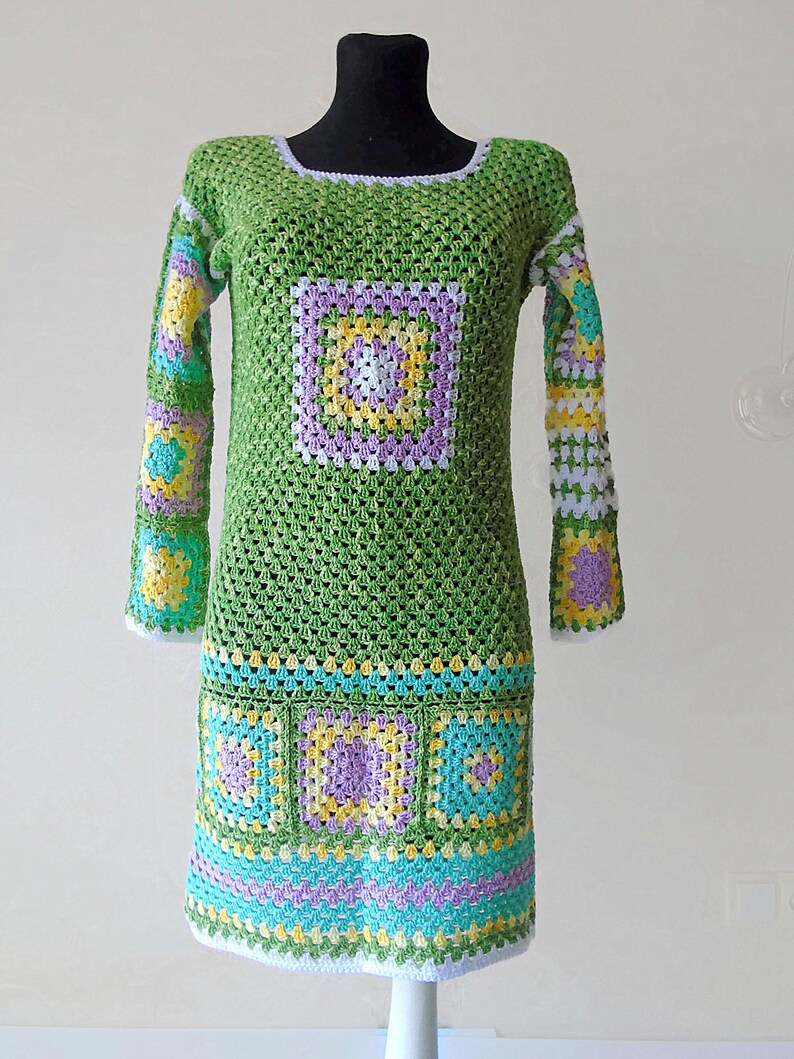 Groene Jurk Tuniek Met 3 4 Mouwen Gehaakte Oma Vierkante Trui Etsy
