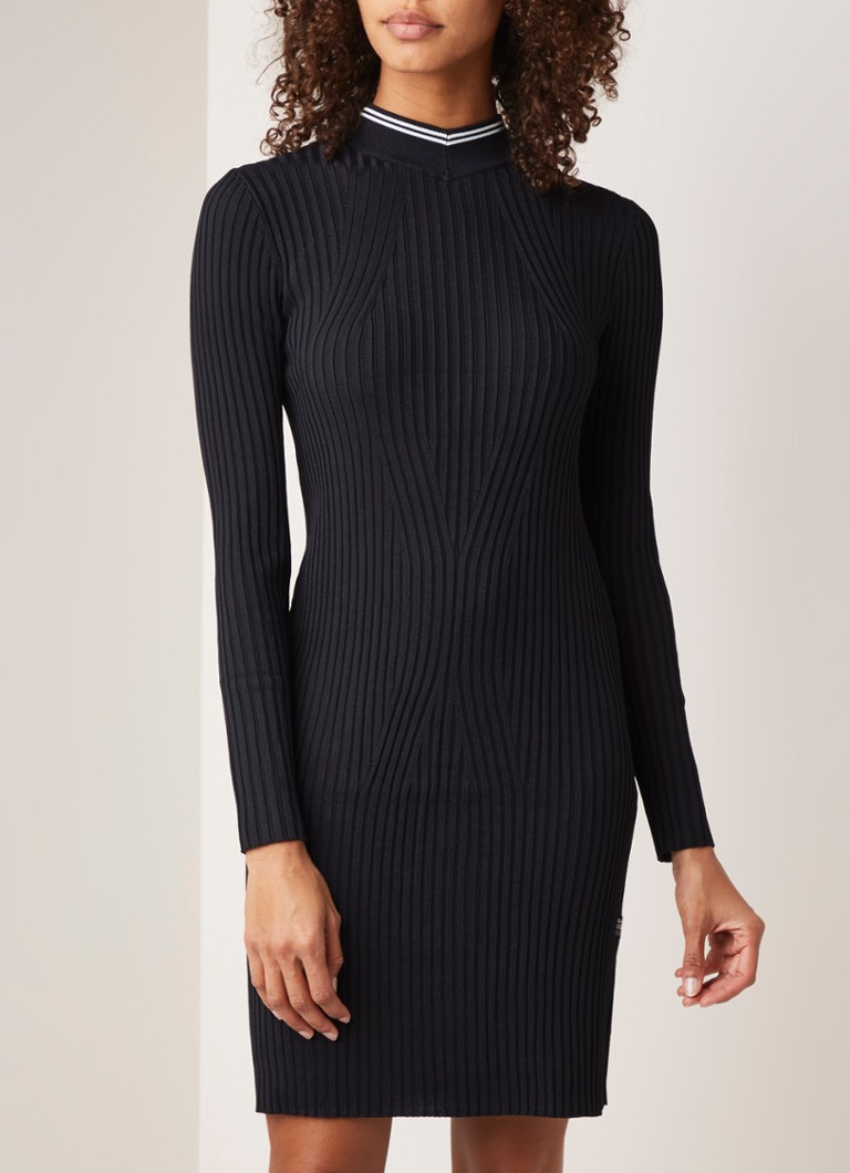 G Star Raw Lynn Ribgebreide Mini Jurk Met Lage Col Zwart De