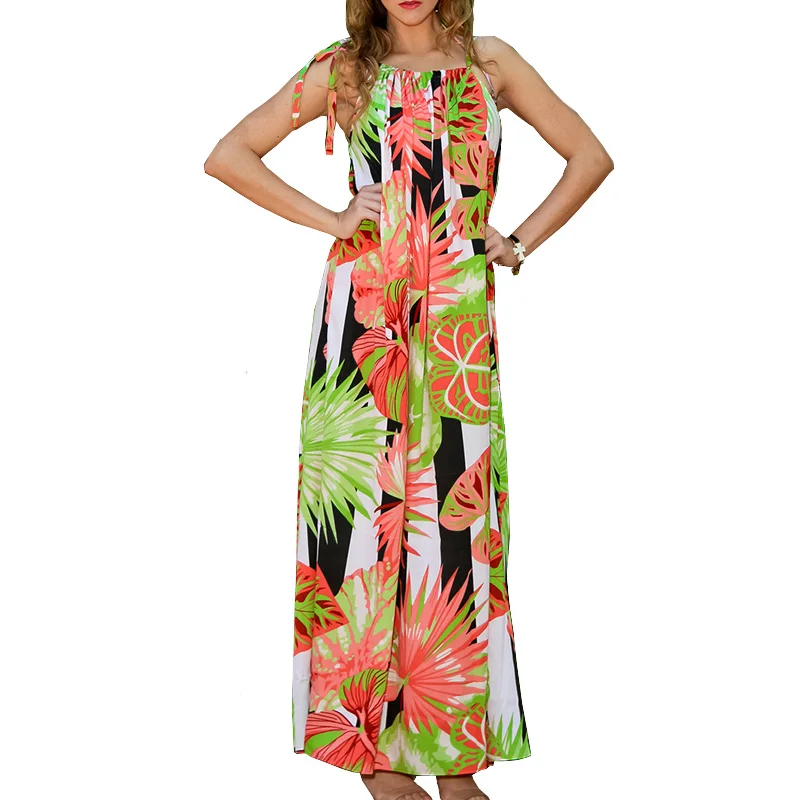 Zomer Vrouwen Palm Bladeren Jurk Bandage Halter Bohemian Boho Jurk