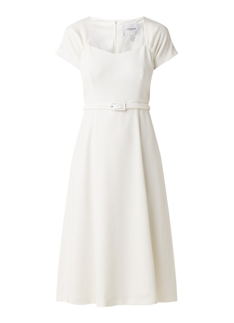 L K Bennett Emmy Midi Jurk Met Ceintuur Gebroken Wit De Bijenkorf