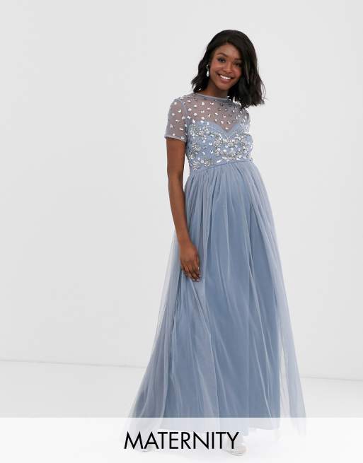 Maya Maternity Maxi Jurk Met Kapmouwjes En Bloemenprint Met