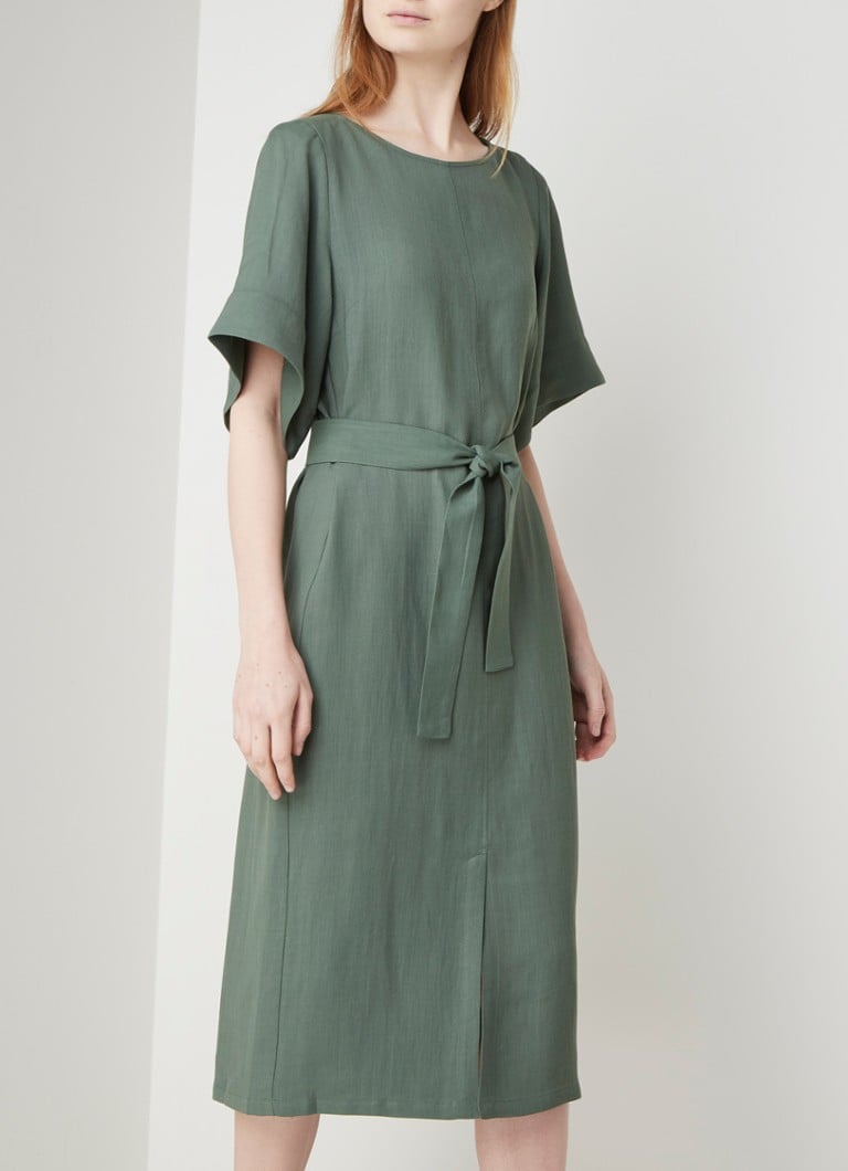 Humanoid Brit Midi Jurk In Linnenblend Olijfgroen De Bijenkorf