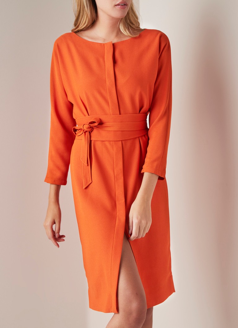 Ladress Helena Midi Jurk Met Ceintuur Oranje De Bijenkorf