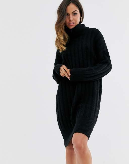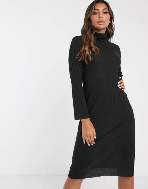 New Look Geribbelde Trui Jurk Met Col In Zwart Asos