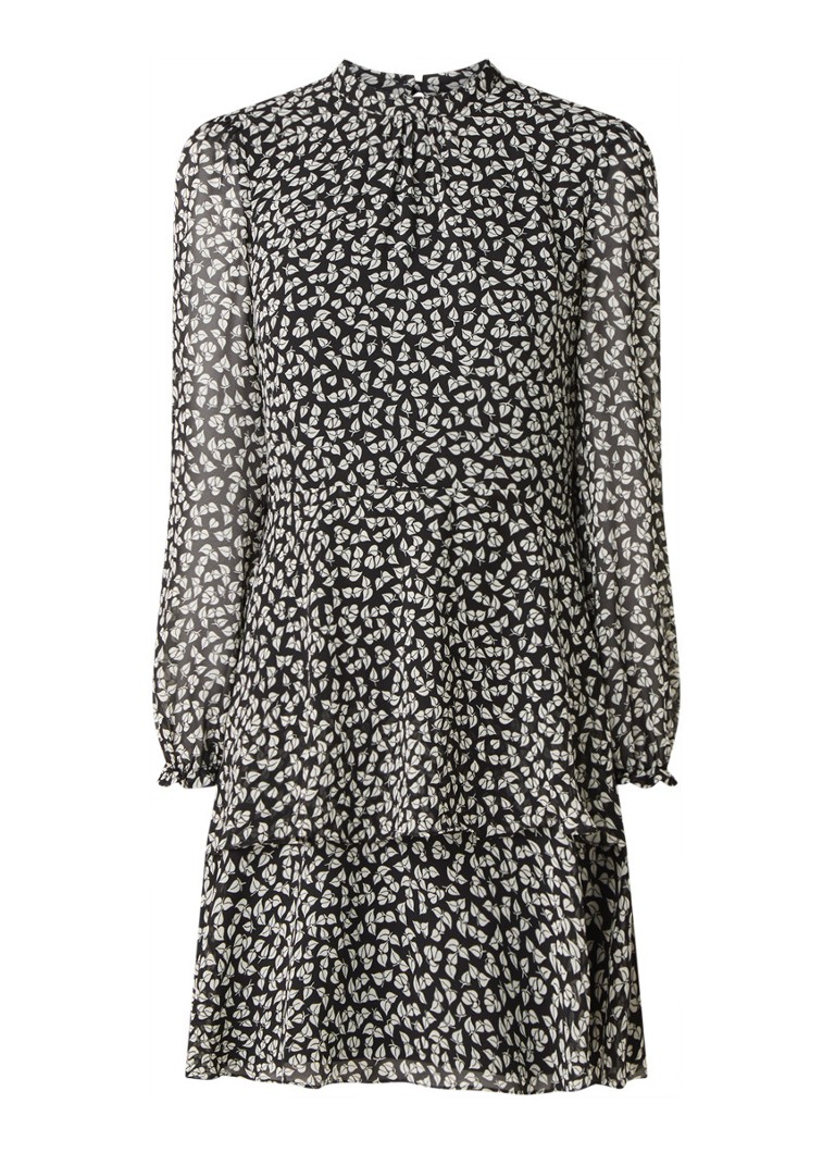 Warehouse Mini Jurk Met Bladdessin En Semi Transparante Mouwen