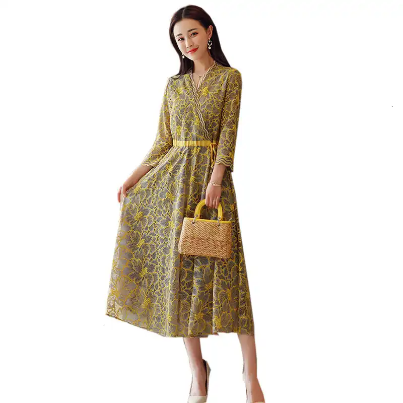 Nieuwe Lente Elegante Jurk Vrouwen Bohemian Sexy Hoge Taille Print
