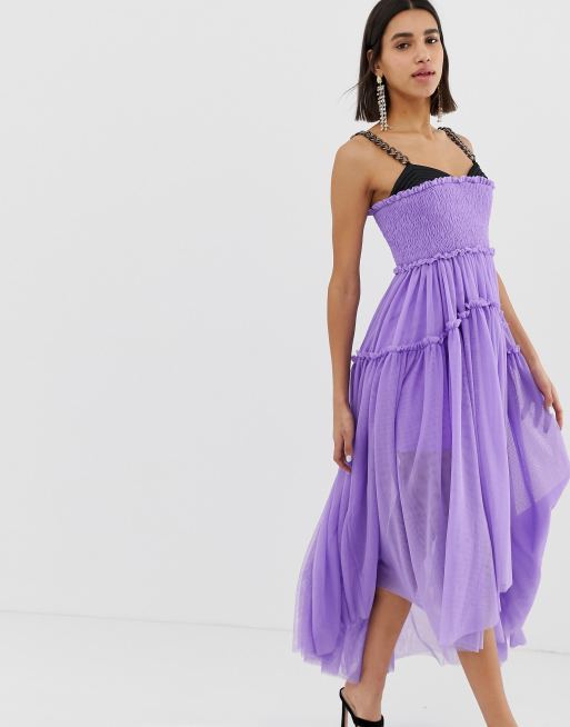 Asos Edition Lange Tule Jurk Met Langere Achterkant En