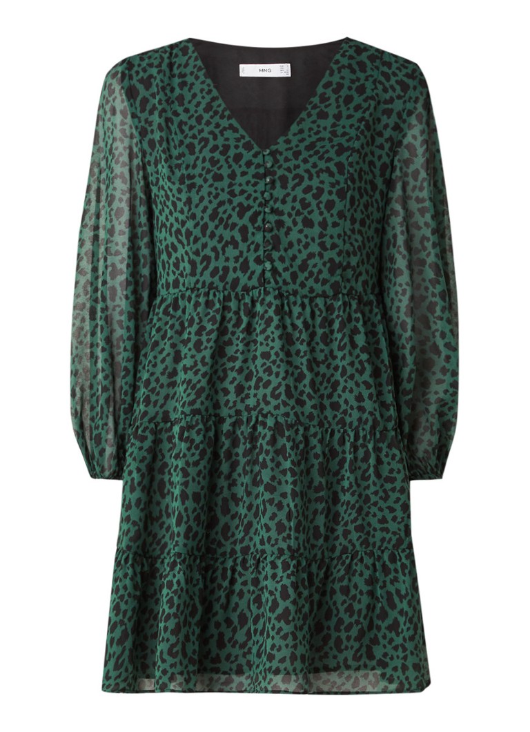 Mango Prarie Mini Jurk Met Panterprint En V Hals Donkergroen