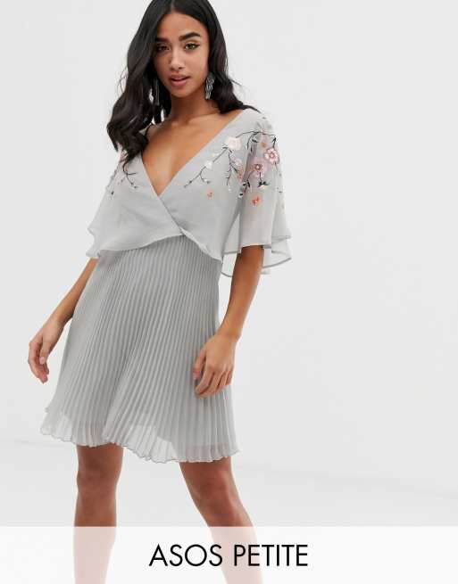 Asos Design Petite Mini Jurk Met Fladder Mouwen En Geborduurde