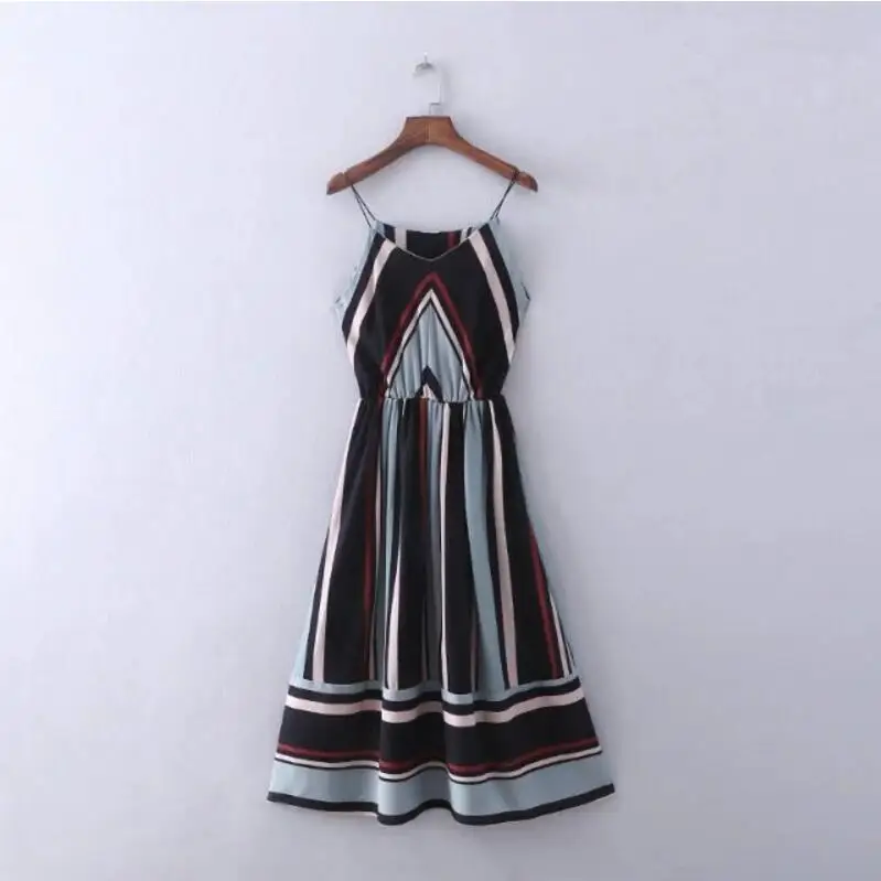 Casual Boho Zomer Strand Gestreepte Jurk Spaghettibandjes Jurk