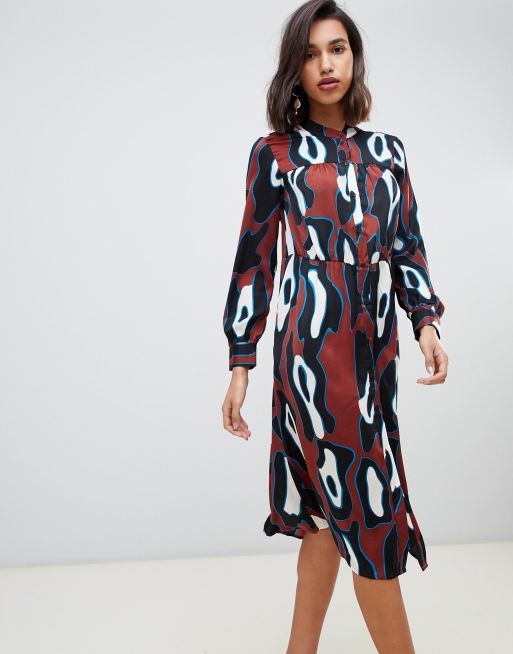 Asos Design Hoogsluitende Lange Jurk Van Satijn In Roestkleur Asos