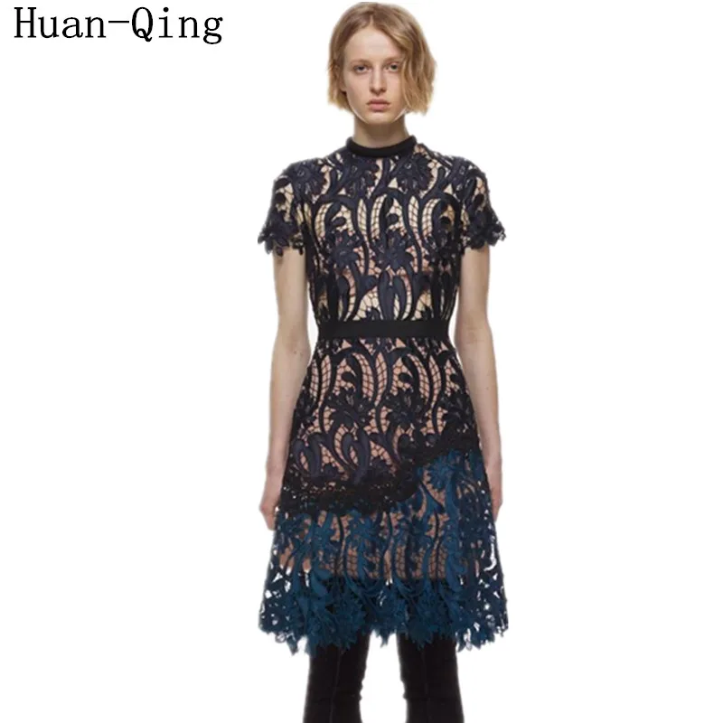 2017 Zomer Runway Vrouwen Sexy Kant Hol Twee Kleuren Patchwork