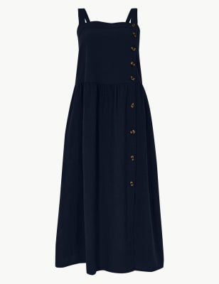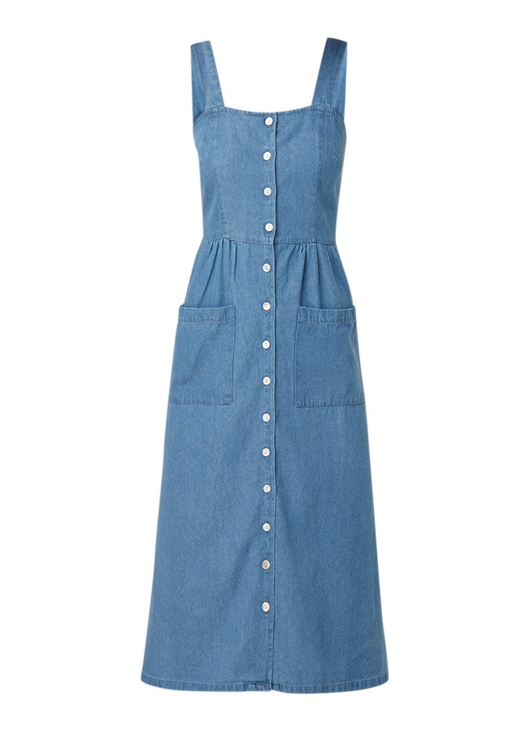 Warehouse Mouwloze Midi Jurk Van Denim Met Knoopsluiting Indigo