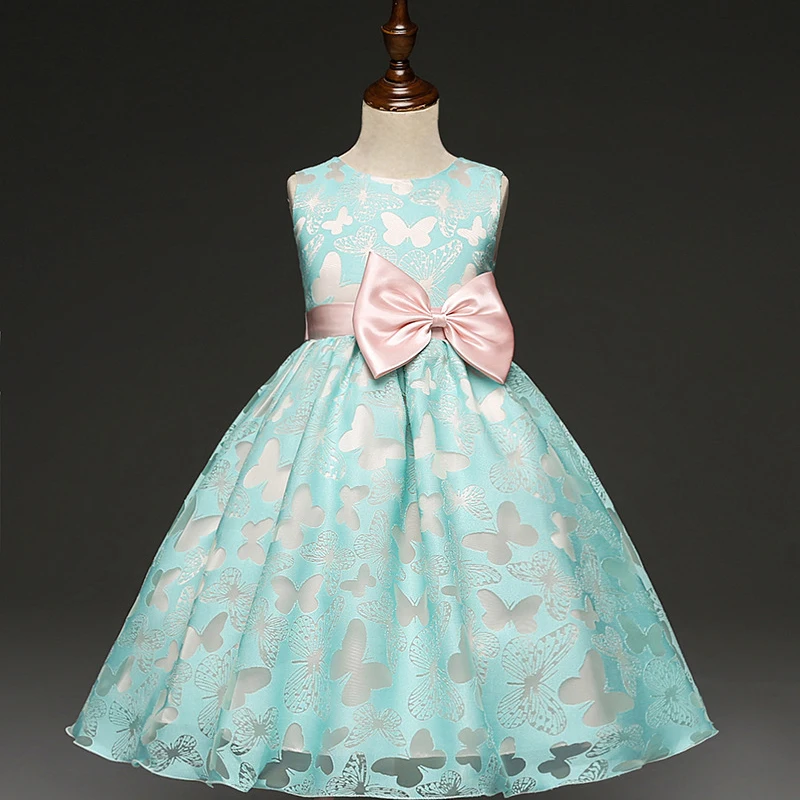 Meisje Jurk Blauw Vlinder Boog Baby Meisje Jurken Jurk Voor