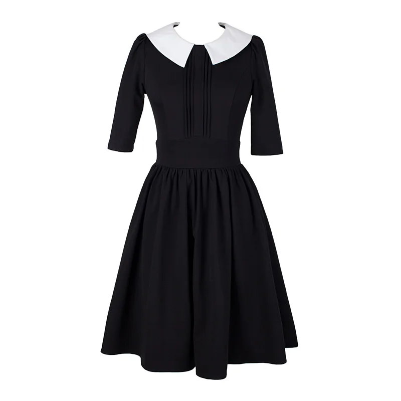 Hepburn Herfst Zwarte Jurk Met Witte Kraag Chic Jurken New York