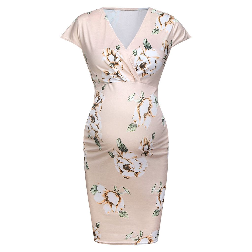 2020 Women Maternity Dresses Summer Pink Floral Print Sexy Casual