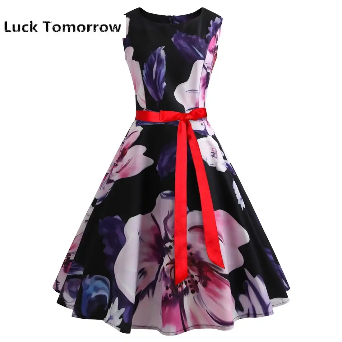 Druck Frauen Sommer Kleid Hepburn 50 S 60 S Retro Schaukel Vintage
