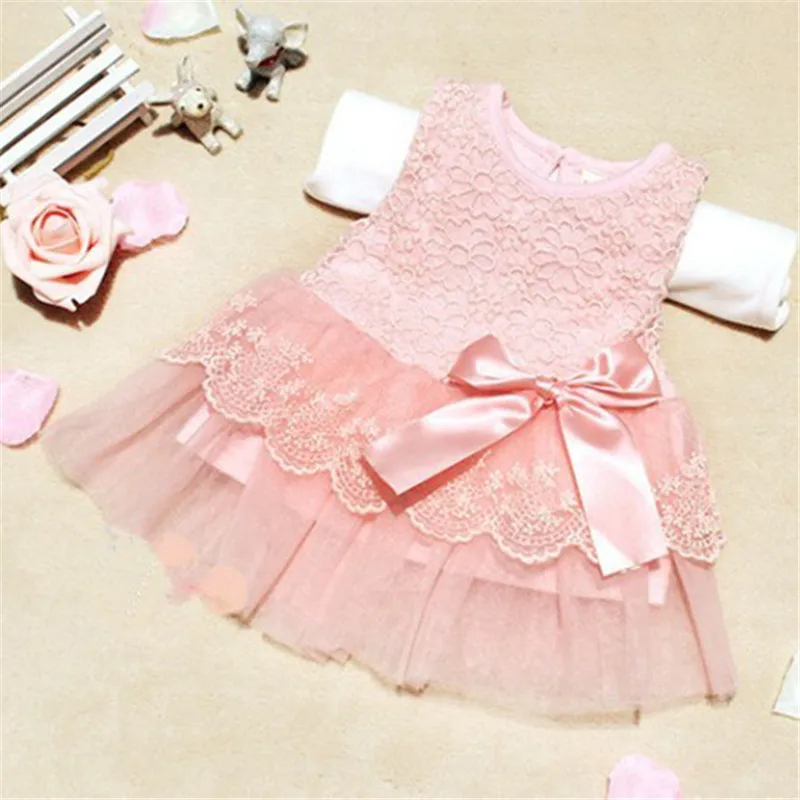 Baby Meisjes Prinses Jurk Mouwloze Kanten Jurk Haak Kids Met Boog