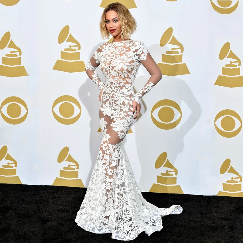 Beyonce Zien Door Kant Celebrity Jurk Lange Mouwen Floor Lengte
