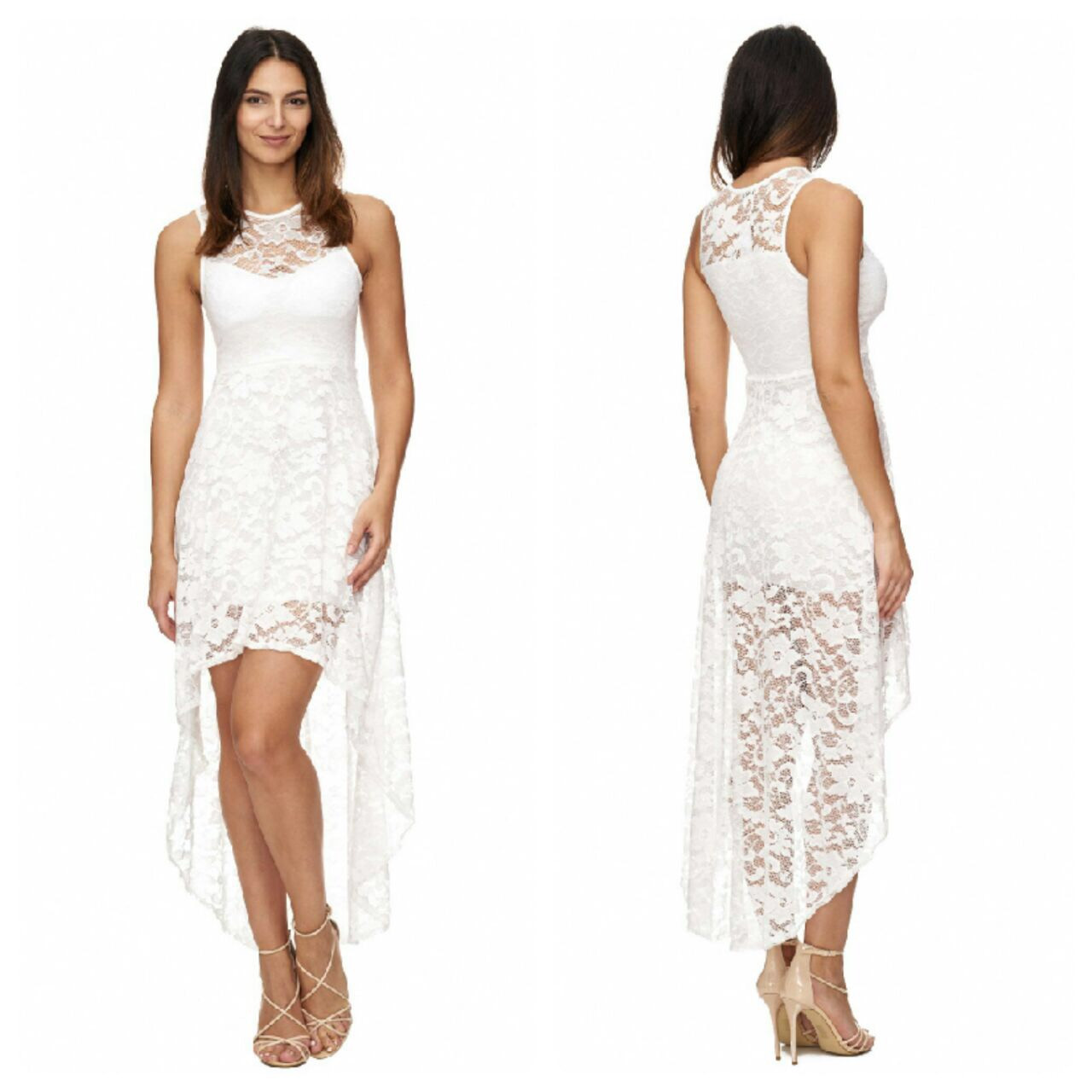 Cocktailjurk Wit Ivoor Voor Kort Achter Lang Kant Av72006
