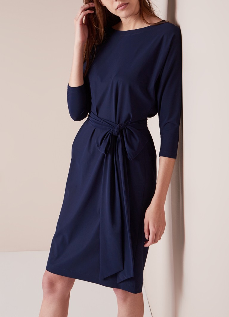 Ladress Caroline Midi Jurk Met Strikceintuur Donkerblauw De