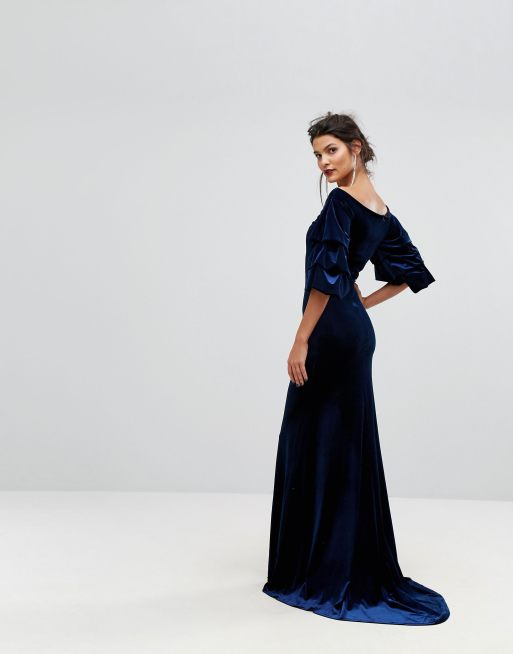 Tfnc Tall Lange Fluwelen Jurk Met V Hals Met Ruchemouwen Asos